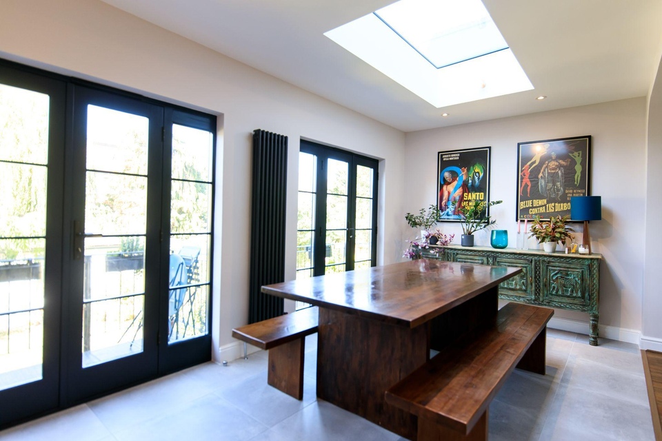 We’re very proud of this refurbishment project in North London, designed, supplied and installed by Mark of Q Joinery Ltd. This build boasts a beautiful cast iron Juliette balcony and an amazing pair of French doors, which the much respected Vernon Morgan masterfully handcrafted. The complementary colour palette was chosen by Katja @globetotting. We fully refurbished the lower ground floor and dining room, installed a new bathroom, and upgraded the office for Nick, Katja and their lovely children! We were there with Nick and Katja throughout the process, helping them make the most cost-effective decisions. We wish them many happy memories of sitting and watching from their balcony for years to come!