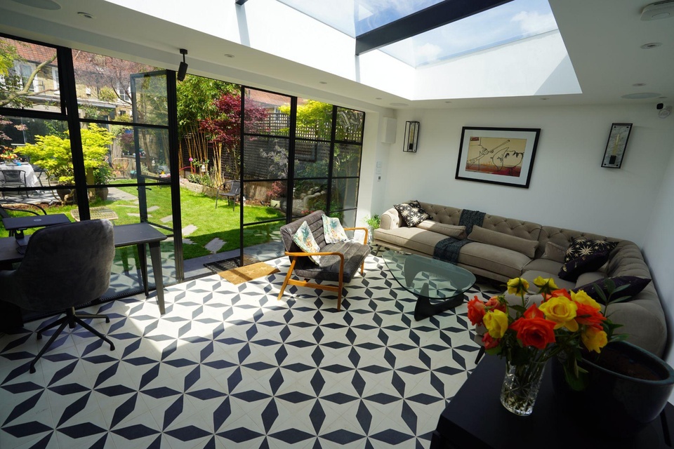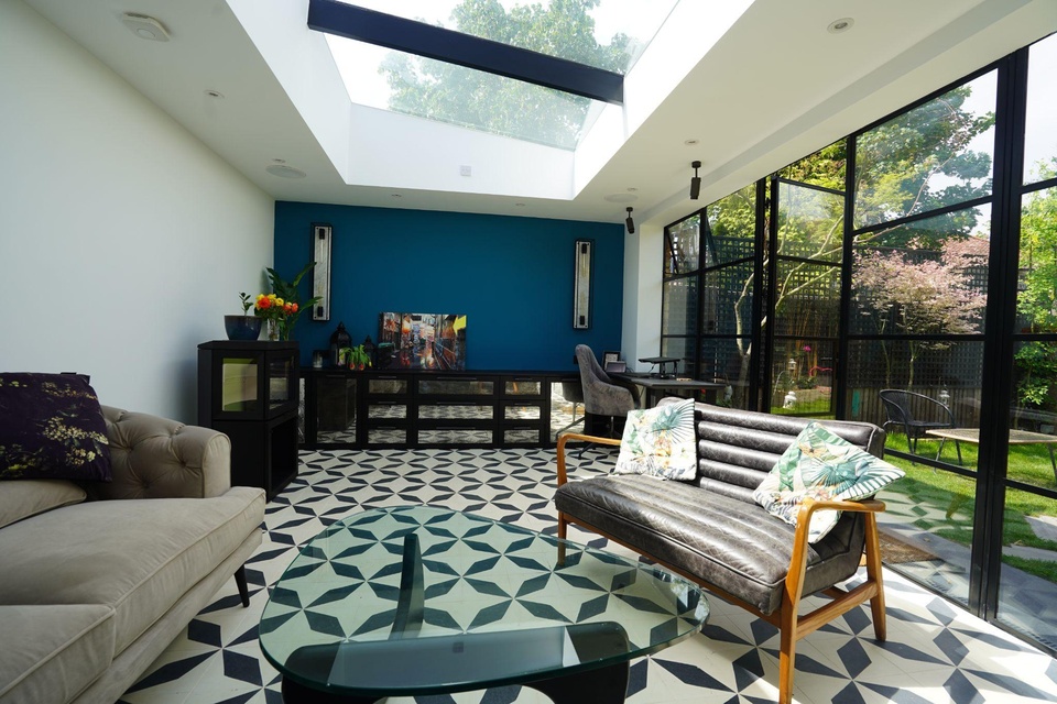 This is one of our construction projects which we completed in West London. In this stylish new build garden office, we started with the foundations. Next, we fitted out the build, installed the electrics, installed the heating services, installed the skylight and then decorated. Finally, we built the patio area in the garden leading up to the barbecue area. Our client Hugo chose the build’s tiles, lights, windows, colour palette, furniture, and other features. We’re sure you’ll agree that he’s got a good eye for design! With such a spectacular garden house, we believe Hugo and his lovely family will be hosting some legendary barbecues in the future!